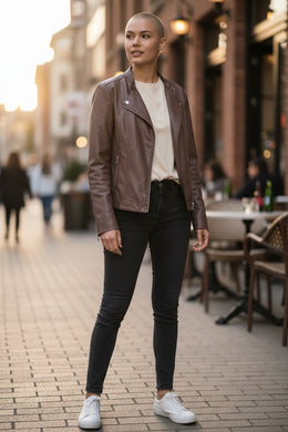 Veste en cuir beige taille l bruphils